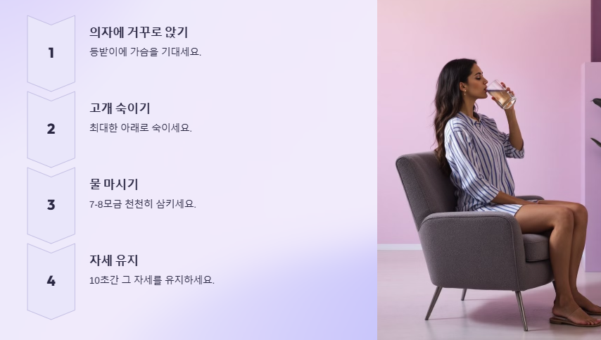 이상의 10가지 방법은 모두 과학적으로 검증되었으며, 실제 사용자들의 높은 만족도를 보인 해결책들입니다. 각자의 상황과 편의성에 맞는 방법을 선택하여 시도해 보시기 바랍니다. 특히 성공률이 가장 높은 '거북이 자세' 물 마시기를 우선적으로 추천드립니다.