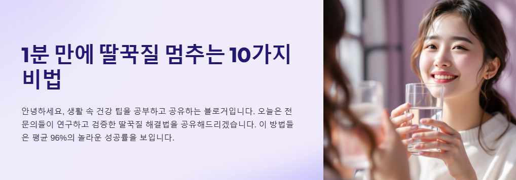"회의 중 갑자기 딸꾹질이 나와 당황했는데, '거북이 자세' 물 마시기로 단 30초 만에 해결했어요. 이제는 동료들에게도 알려주는 해결사가 되었답니다. 특히 스트레스로 인한 딸꾹질에 탁월한 효과를 보았습니다."