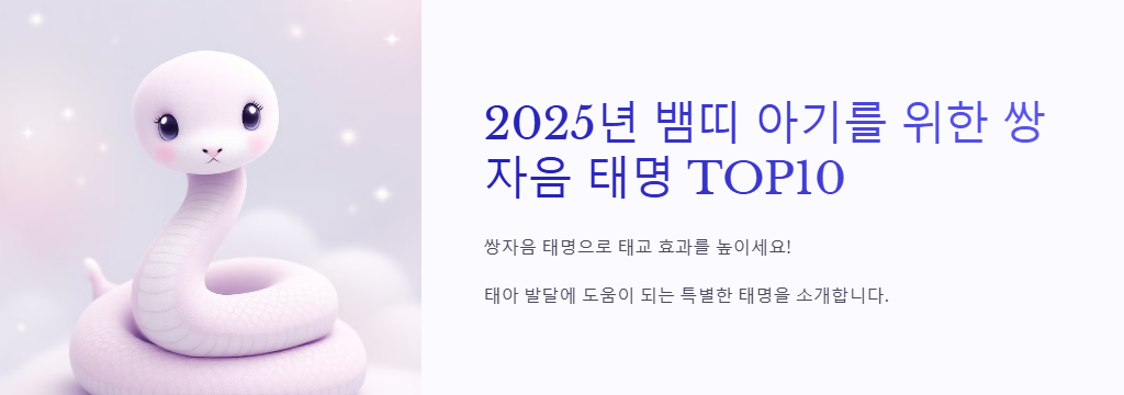최근 태아발달 연구 결과에 따르면, 쌍자음이 포함된 발음이 태아의 청각 발달과 자극에 효과적이라고 합니다. 이러한 연구 결과를 바탕으로, 2025년 뱀띠 아기를 위한 특별한 태명을 준비해 보았습니다.